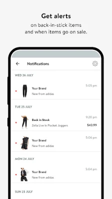 • Alerts when your favorite items come back in stock or go on sale in your Wish List or Bag